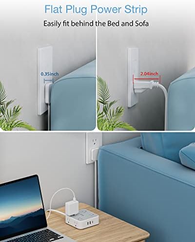 Surge Protector Power Strip – Flat Extension Cord Flat Plug Power Strip, 8 Widely Outlets, 3 USB Charger(1 USB C Port) 3 Side Outlet Extender, 5 Ft, 900 Joules, Office Supplies, Dorm Room Essentials