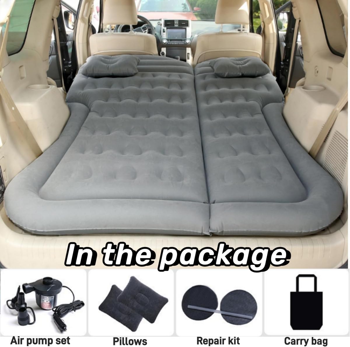 【Easy to Use and Store】 In the inflatable camping mattress package, there are a car charging air pump and 3 different funnels that it might takes 4 to 6 minutes to end inflating the camping mattress. This suv air mattress only needs 2 to 3 minutes for deflating. Because it is portable, you can store it in our storage bag; and it is convenient to take it with you anywhere you need.