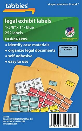 Tabbies Legal Exhibit Labels, Defendant’s Exhibit, 1.63 X 1, Blue, 9/Sheet, 28 Sheets/Pack, 252 Labels/Pack