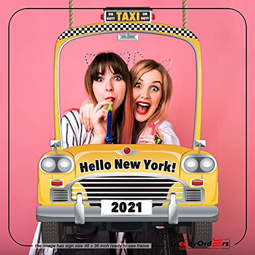 Taxi Photo Booth Frame, Car Photo Booth Prop, Birthday Photo Booth Frame, NYC Party Decoration, Yellow Cab Photo Booth Backdrop, Yellow Taxi Selfie Photo Booth Frame, Sizes 36×24 and 48×32 Inches