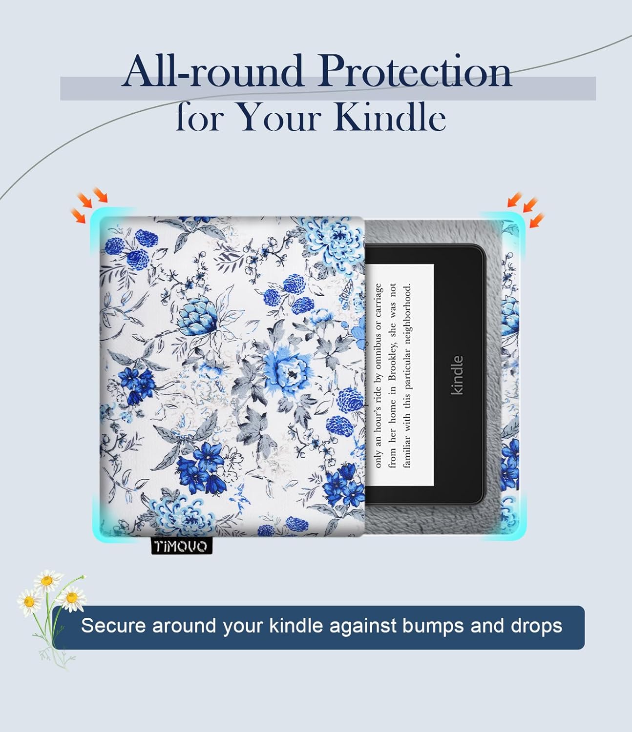 TiMOVO Sleeve Case for 7″ Kindle Paperwhite and Kindle Colorsoft Signature Edition (2024 Released), Protective Pouch Bag Case Cover for 6-7 Inch Kindle E-Reader, White&Blue Floral