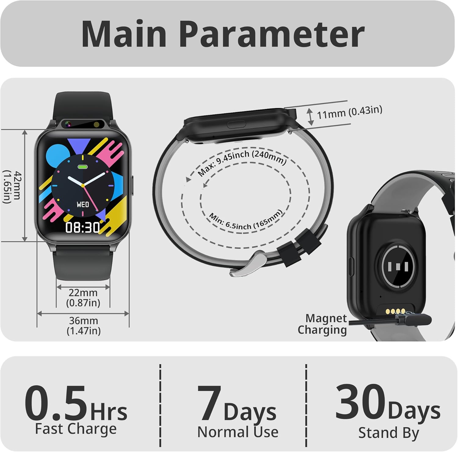 ✅【Perfect Gift for Kids】Built to kid-friendly design. Soft and comfortable material makes the children have no obvious wearing feeling, it is durable. 1.85″ IPS HD touch screen is very esay to operate for kids. Ideal gift for birthday, Christmas, Easter, and holidays, or any special occasion. We provide 90 days money back, lifetime warranty and 24/7 friendly customer service. If you have any questions, please feel free to contact us.