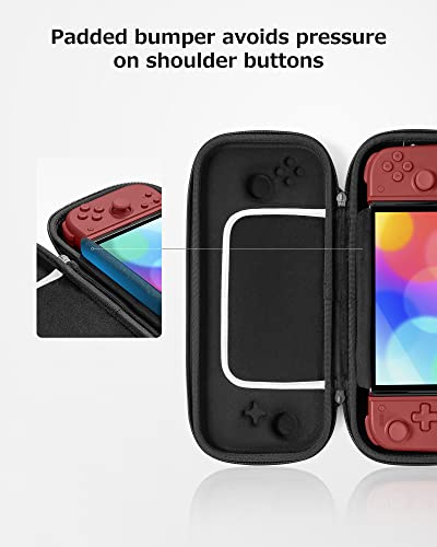Super protection: The durable hard shell Protects your Switch Console free from scratches. The EVA hard shell has raised areas, the accurate design perfectly fits the curves of the switch console, and prevents the joystick and buttons from being mis-touched; a built-in padded buffer avoids compression on shoulder buttons.