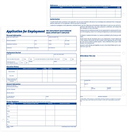 TOPS Employment Application Form – 50 Sheet(s) – Gummed – 11″ x 8.50″ Sheet Size – White – 2/Pack