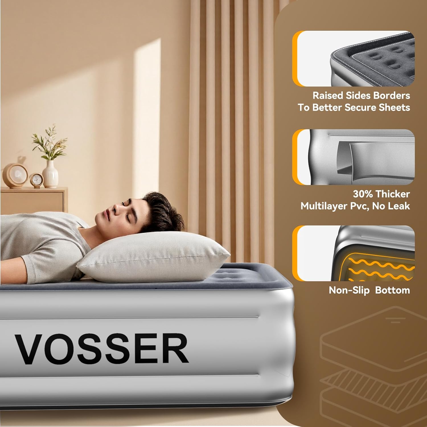 【24/7 US-Based Customer Support】 VOSSER offers 24/7 US-based customer support to assist with any concerns. Should you experience any issues with the air bed, feel free to reach out for prompt assistance, helping you enjoy a smooth and reliable sleep experience