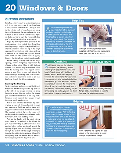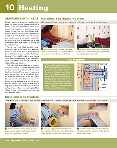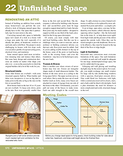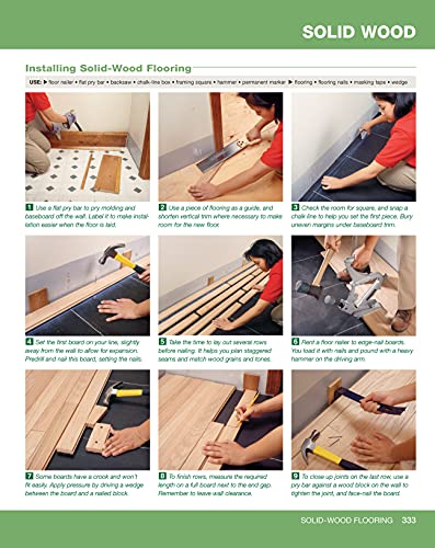 Over 600 pages, the ultimate home improvement manual325 step-by-step projects with how-to photos and materials listsEssential information on tools, materials, and basic skillsComprehensive sections on wiring, plumbing, roofing, siding, heating, cooling, flooring, cabinets, and moreIncludes a remodeling guide, a special photo-illustrated section on contracts, contractors, and managing your remodeling projectsTech-reviewed by more than 20 industry expertsUpdated with information on the latest code changes, USB outlets, AFCI/GFCI breakers, and more