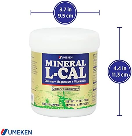 Umeken Mineral L-Cal Supplement, Large Bottle, 6 Month Supply, Enriched with Magnesium, Vitamin D3 and Minerals, 360g, 3600 Balls (Pack of 2)