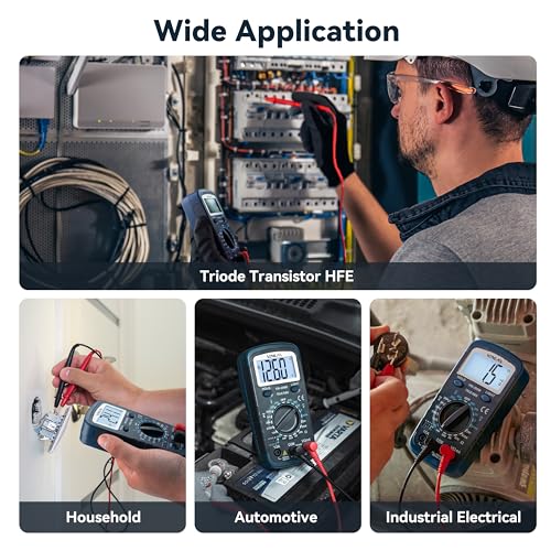 Multifunction: This digital multimeter can test AC/DC Voltage, DC current, Resistance, Diode, Continuity, Triode hFE value Measurement.