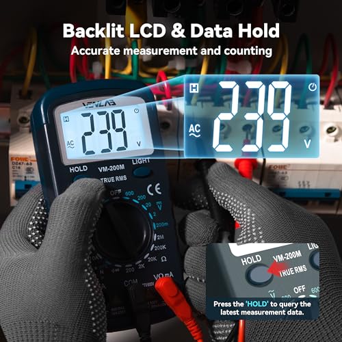 Easy to Use:VM200M Multimeter support continuity buzzer, low battery prompt, auto power-off. Built-in a backlight LCD display for a clear reading showing in low-light areas.