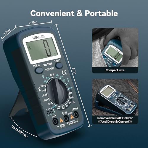 VENLAB Digital Multimeter DC AC Voltmeter, Ohm Meter, Fast Accurately Measures Voltage, Current, Resistance, Continuity, Diode, hFE, Tests Live Wire