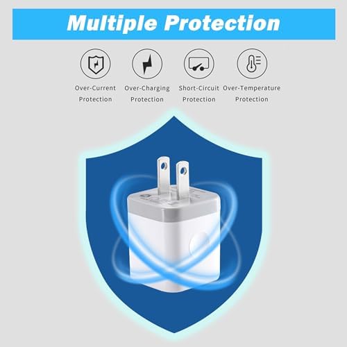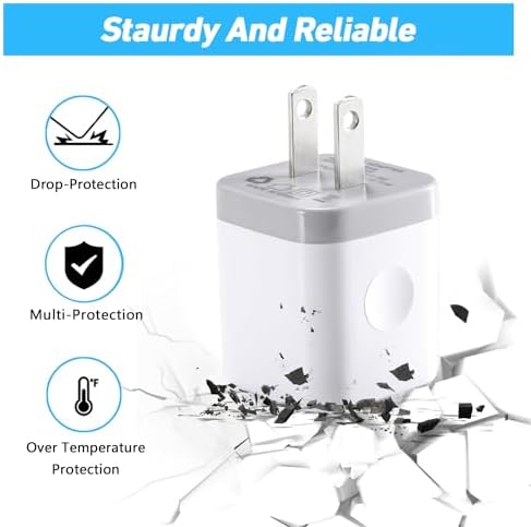 【Safe Charging】: Wall Charger Use PC fireproof material, Provide multiple protections, including: Output short circuit, built in over-current, over-voltage and over-heating protection etc. USB Wall Charger has undergone 100% burn-in tests, extending the service life and charging more safety. Automatically stop charging when the battery is full.